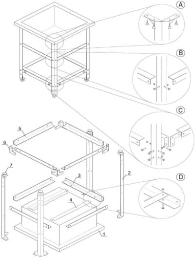 - Распаковать упаковку, моечное отдление (1) положить на сборочный стол.