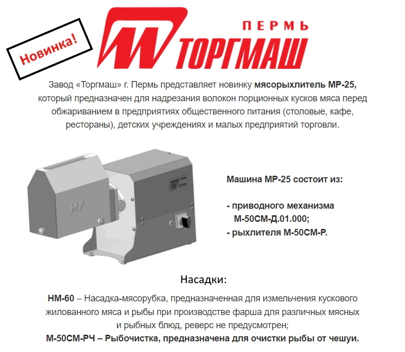Завод «Торгмаш» г. Пермь представляет новинку - мясорыхлитель МР-25!